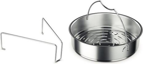 Bạn có thể đặt chân đế và xửng hấp vào trong lòng nồi áp suất Fissler VitaVit Comfort 6L. Nhờ phụ kiện này, bạn có thể nấu 2 hay nhiều món cùng lúc.